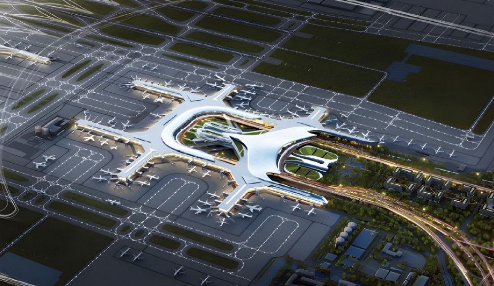 交通中心位于T1航站樓東側,總面積約80萬平方米,自東向西。自上而下將機場航站樓、磁浮、高鐵、地鐵、長途車站、公交站、出租車上客點及社會停車庫等交通設施集約布局于一體。工程地下室抗拔樁采用機械連接竹節樁7萬米。